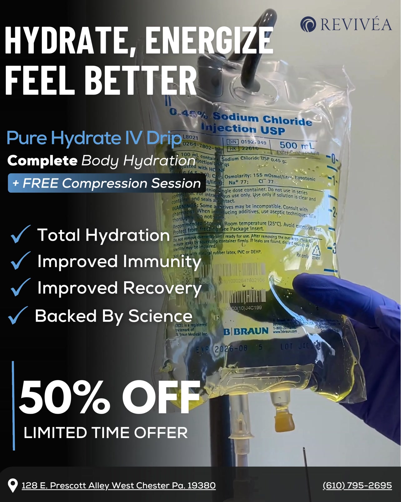 🎉 Hey West Chester Area! 🗣 For a limited time, we are offering [25] new clients 50% Off a Base IV Drip Therapy Session here at Revivea Health and Wellness!💉 Our IV Drips may help with improving...