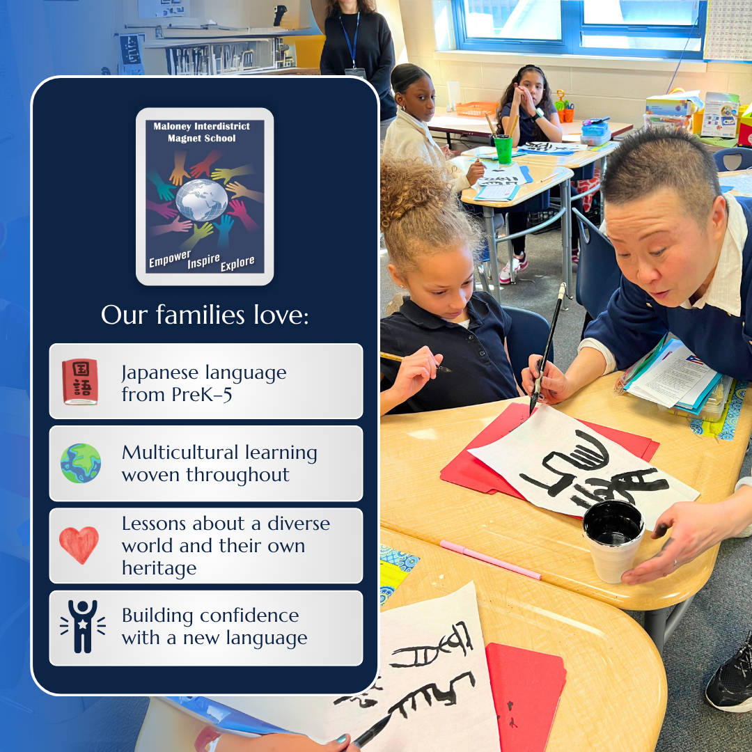 Elementary students speaking Japanese? Students at Maloney Interdistrict Magnet School explore the language and culture, building global awareness alongside academic skills. Our families love: 🏮...