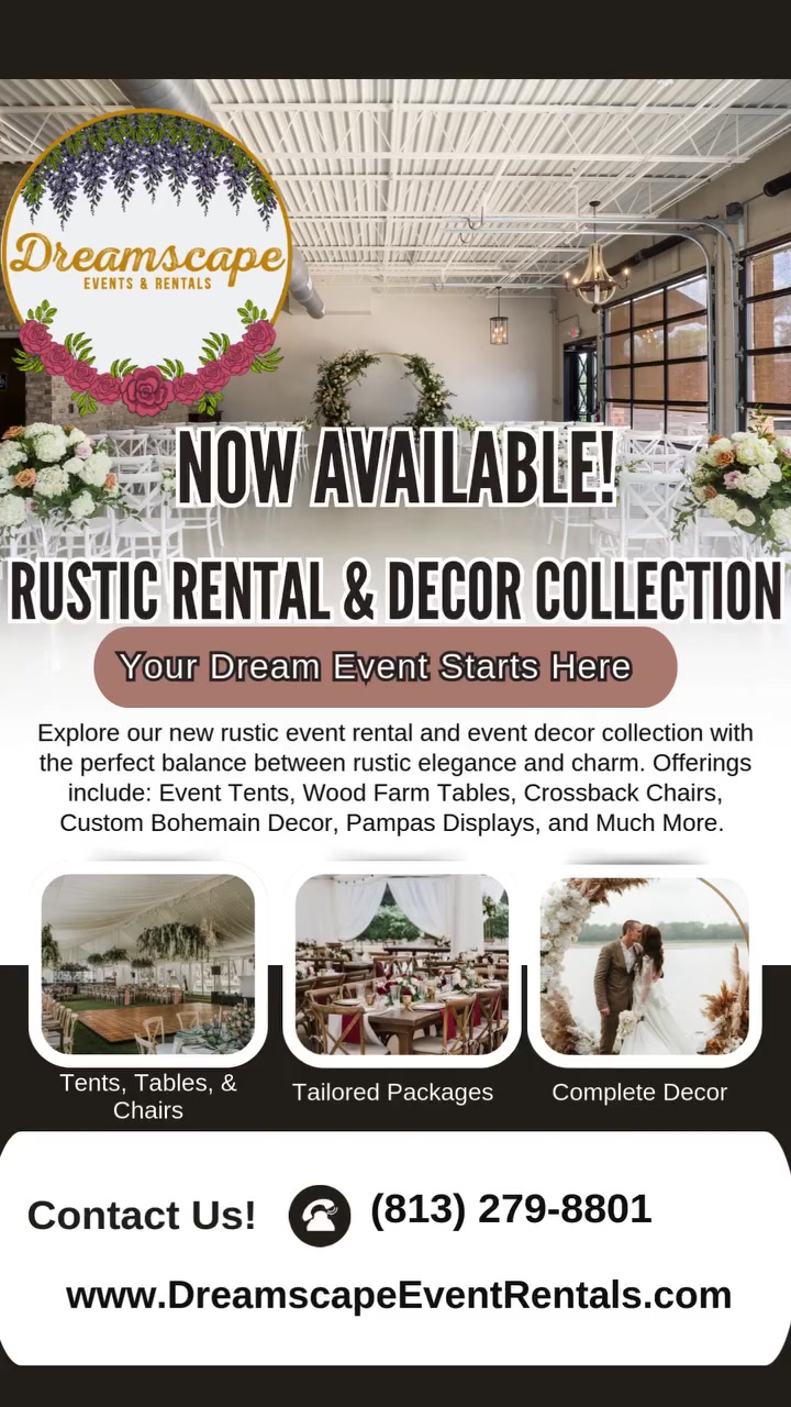 Dreamscape Events & Rentals offers a comprehensive approach to hosting events by offering event rentals, design, and decor all in-house. It is our pleasure to service events throughout Hillsborough...