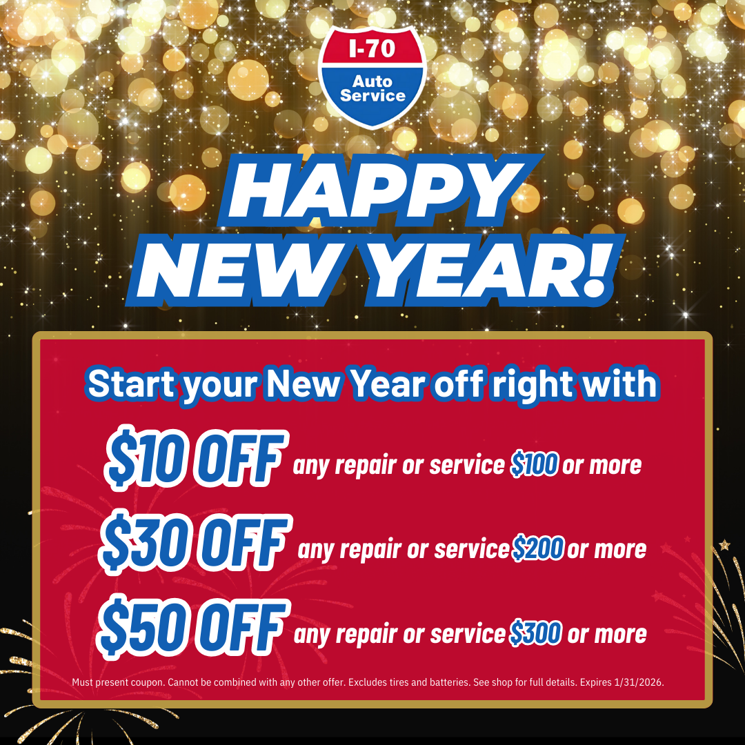 Roll into the New Year with savings at I-70 Auto Service! 🎉🚗 From savings on repairs and services, to our $69.99 Travel Special, plus a little coupon clean-up to help you save even more, we’ve got...