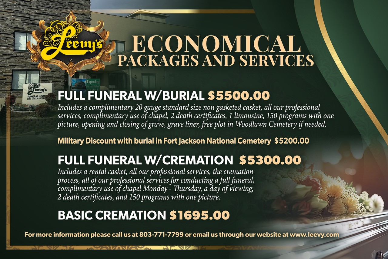 In these tough economic times, we understand the need to be financially responsible. At Leevy's Funeral Home, we have always had economic plans within the means of all budgets. In your hour of need...