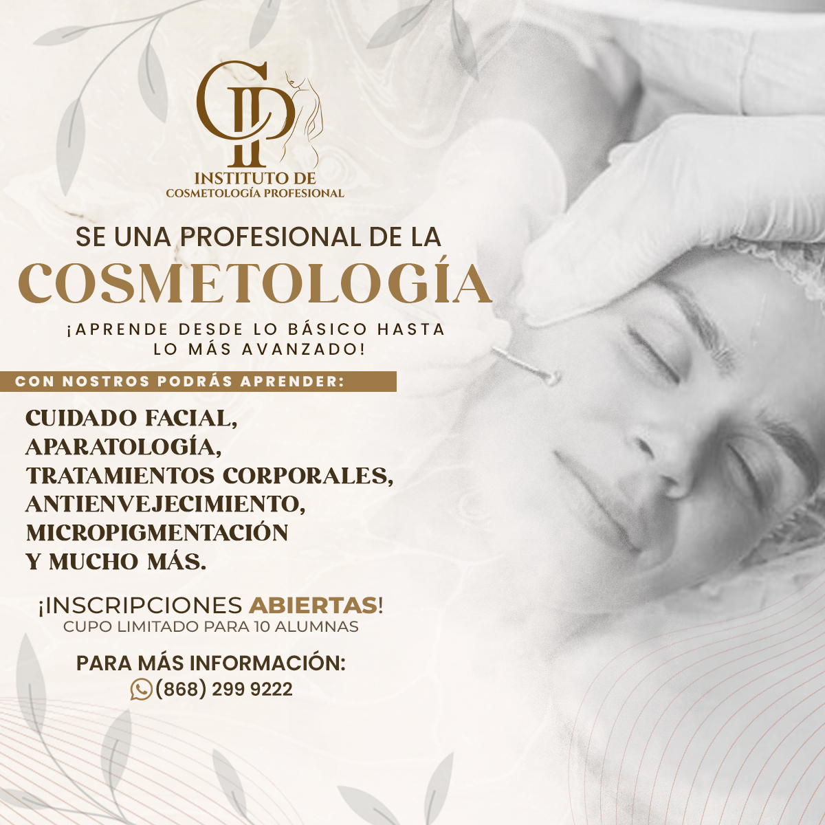 Nuestro programa de COSMETOLOGÍA PROFESIONAL está diseñado para brindarte una formación completa, actual y práctica. 📚 Aprenderás técnicas estéticas como: ✔️ Aparatología ✔️ Diagnóstico de piel ✔️...