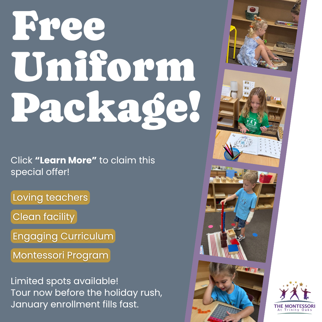 Enroll now and get a FREE uniform package! The Montessori at Trinity Oaks is a Montessori Program that offers safe, loving care for your child right here in Trinity. ✨ Limited spots before the...