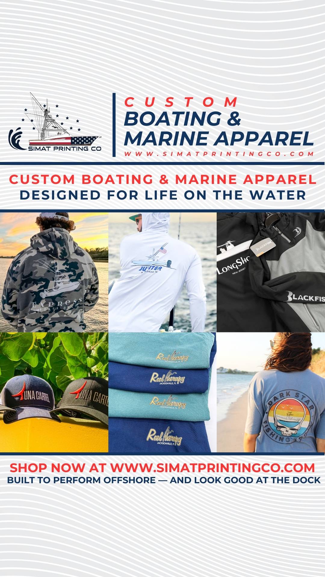 Outfit your crew or brand with custom marine apparel 👕 Embroidery, printing & pro finishes. Message us for a quote 📩