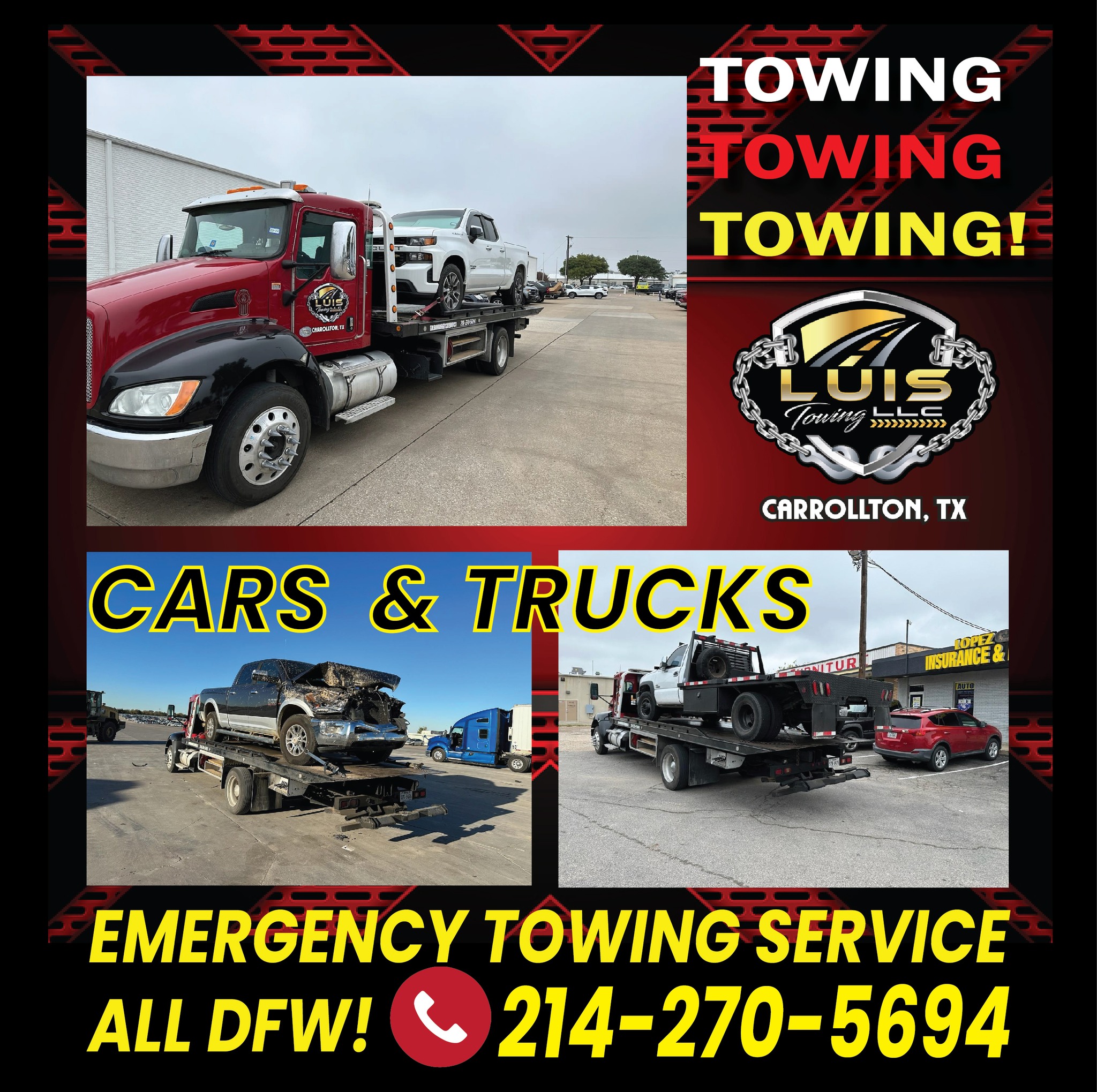š FAST TOWING SERVICE!!! Save this number and refer us to a friend! ā 214-270-5694 Always ready and Available. š We serve al DFW and provide long distance towing.