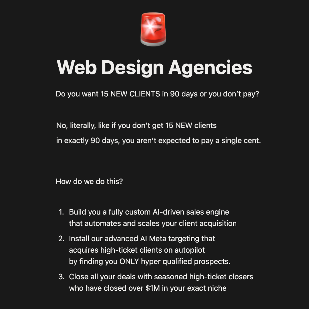 Web Design Agencies Above $15k/Month: How To Use Low Cost AI Meta Targeting To Book 300+ Calls Every Month And Scale Any Agency Or Coaching Business To $10k/month, $100k/month, Or Even $250k/month...