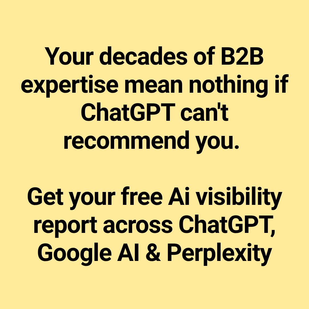Modern secret to generating high-quality MQLs? Top B2B brands are using ChatGPT and Perplexity to capture their big leads. If you're not showing up when prospects use Ai Search, you're missing out....