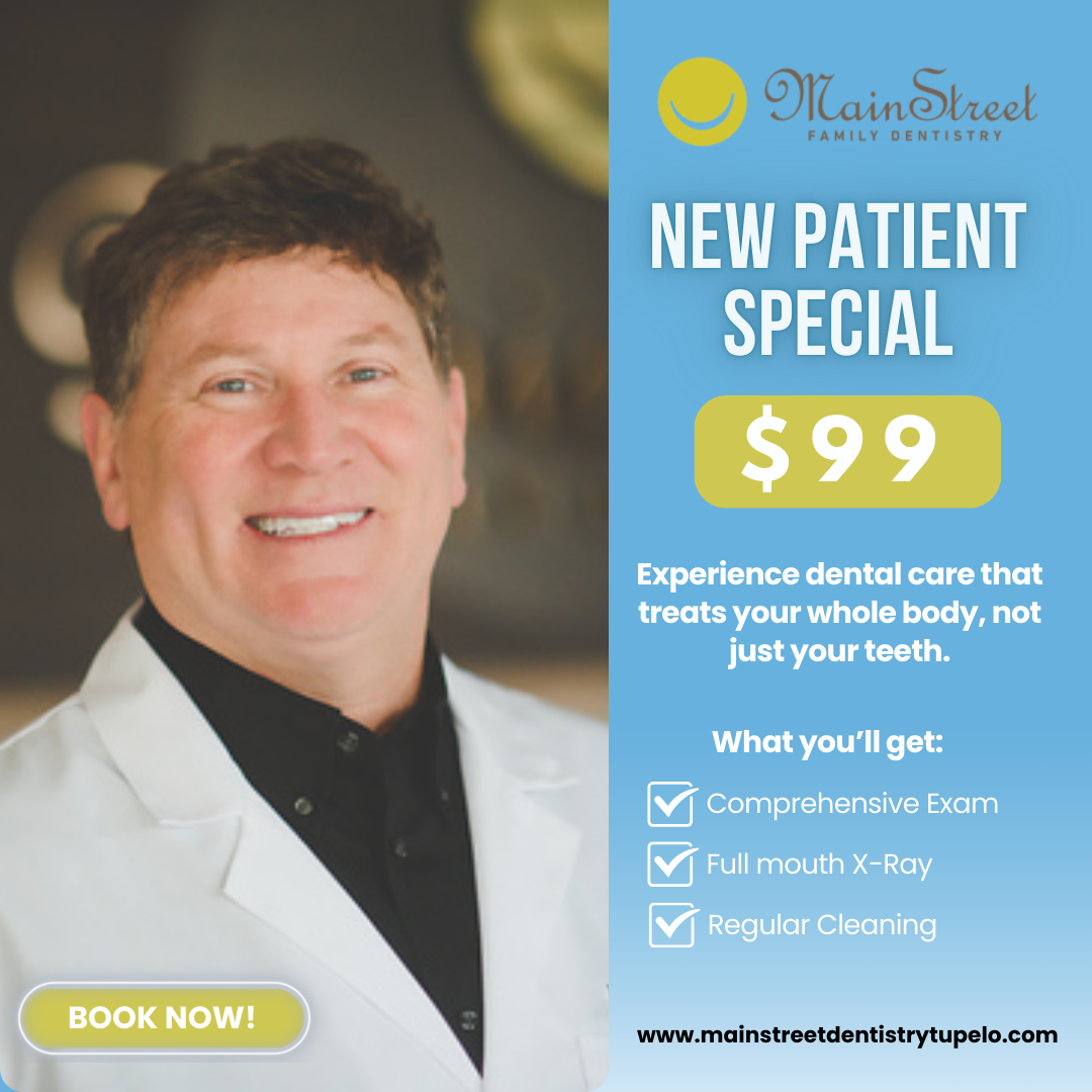😁 New to Main Street Family Dentistry? Get a $99 New Patient Special! Includes Comprehensive Exam, Full-Mouth X-Ray & Regular Cleaning ✨ Book now for a healthier, brighter smile! 🦷💙